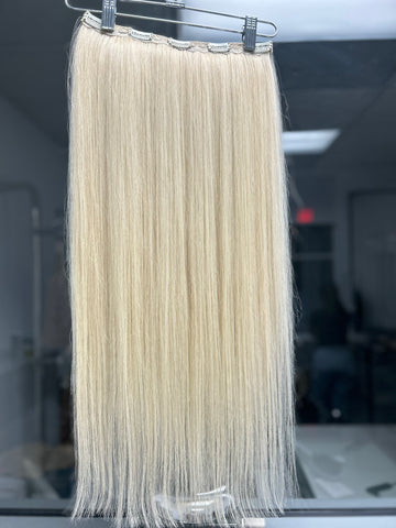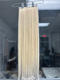 Method description: Our versatile hair solution features strains attached to a small metal clip that is clipped into the hair. A quick, easy, and temporary do-it-yourself approach to achieving longer and fuller hair with no long-term bonding, pain, or damage to your natural hair. It is a suitable method for those seeking to do beautiful hairstyles for parties, events, and so on. Clients can place them without pain, and they are easy to put on and take off whenever you want! Hairstylists can also remove the clips and install them as weft extensions. Experience the freedom to enhance your style whenever you desire! Heatless Application.