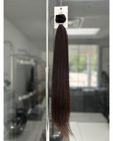 Method description: Our Regular Weft (Machine Weft) is perfect for those seeking thick and full hair density. They are made by taking strands of our human hair and weaving them into a base that can be attached to your natural hair. They are made with strong, durable thread and can last longer than traditional hand-tied extensions. They can also be cut anywhere without unraveling and can be used multiple times. Application Heatless!